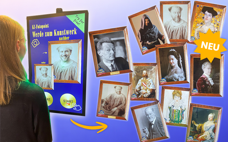 エゴン・シーレやグスタフ・クリムトの紛れもないスタイルであなたを映し出すユニークな写真を作成するために、最先端の技術が使用されています。また、エリザベート皇后、ジークムント・フロイト、ヴォルフガング・アマデウス・モーツァルトなど、歴史上の有名人になりきることもできます。